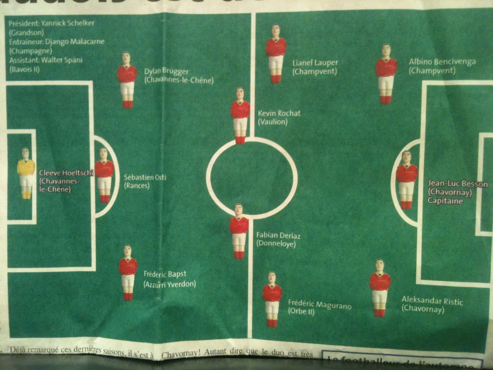 A Champvent comme partout ailleurs, on aime les récompenses. Pareil pour les flatteries. Mais on ne s'en vante pas parce que bon, les gens du crû, ils n’aiment pas trop ça. Parce qu’un gars qui ressort un peu trop du lot, une tête qui dépasse, même pétrie de talent, ça ne plait pas. Pourtant, quand le journal local 'La Région Nord vaudois' décerne le prix des meilleurs joueurs de foot du premier tour du championnat 2011-2012, on ne se prive pas de flagorneries, encore moins de se lancer des fleurs parmi. Car après tout, on aime ça.