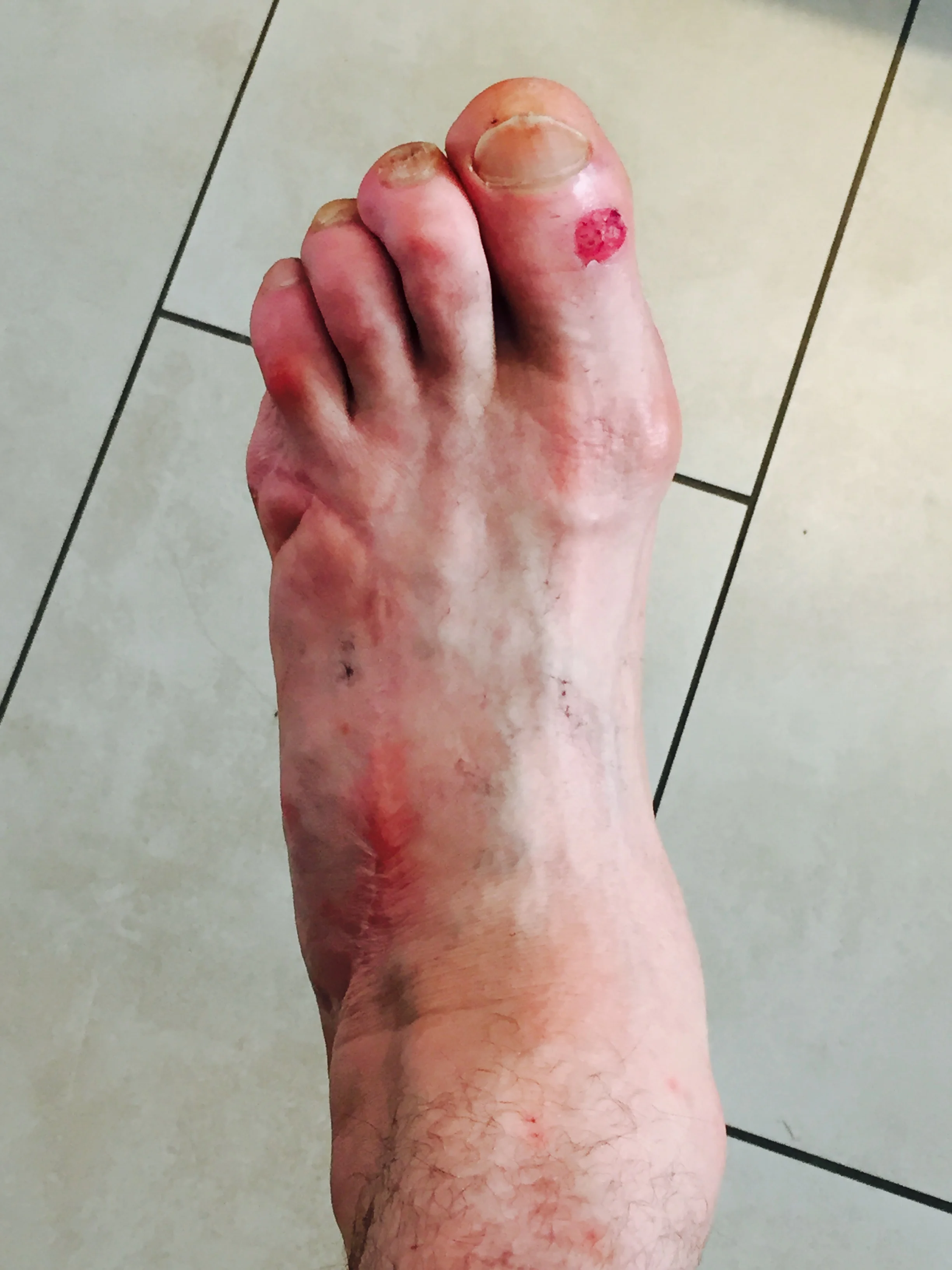 Le vocabulaire casse-pied pouvait ainsi démarrer: anesthésie, greffe, ponction, plâtre, piqûre, fixateur externe, pansement, pensées noires et idées sombres, visite du doc, sonde dans la verge, à selle depuis dans son lit - l'infirmière à côté donc jamais seul -, une infection; qui dit mieux?